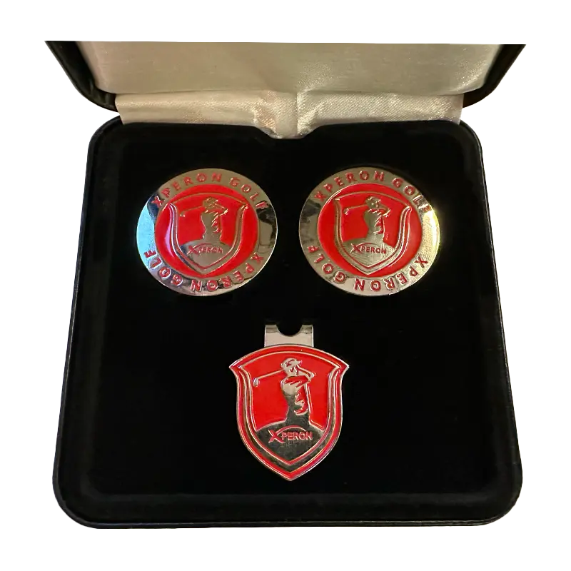 De markers zijn van degelijk metaal, een heus sieraad voor de echte golfer.