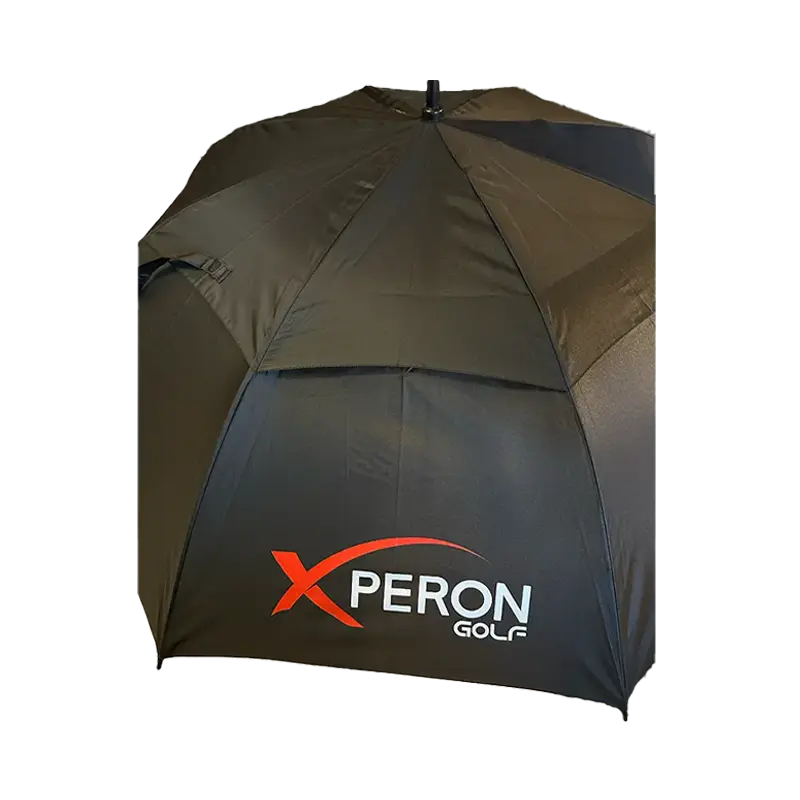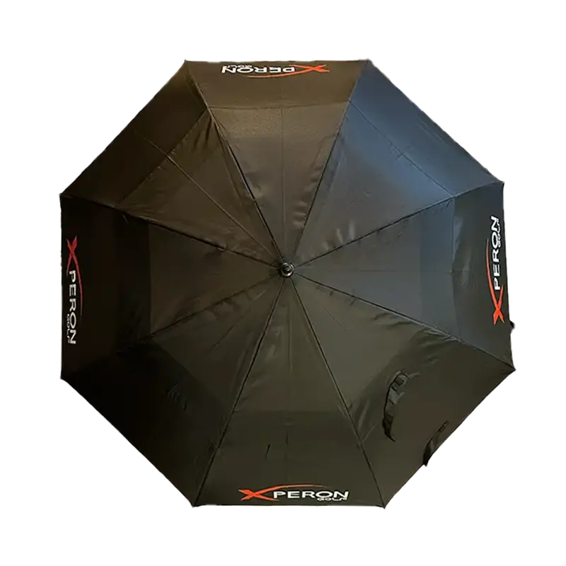 Een fraaie en grote dubbellaags paraplu in geheel zwarte uitvoering, voorzien van het Xperon logo. Deze zogenaamde dual-canopy paraplu heeft een speciale constructie waardoor de wind geen ongewenste vat op jouw paraplu krijgt.